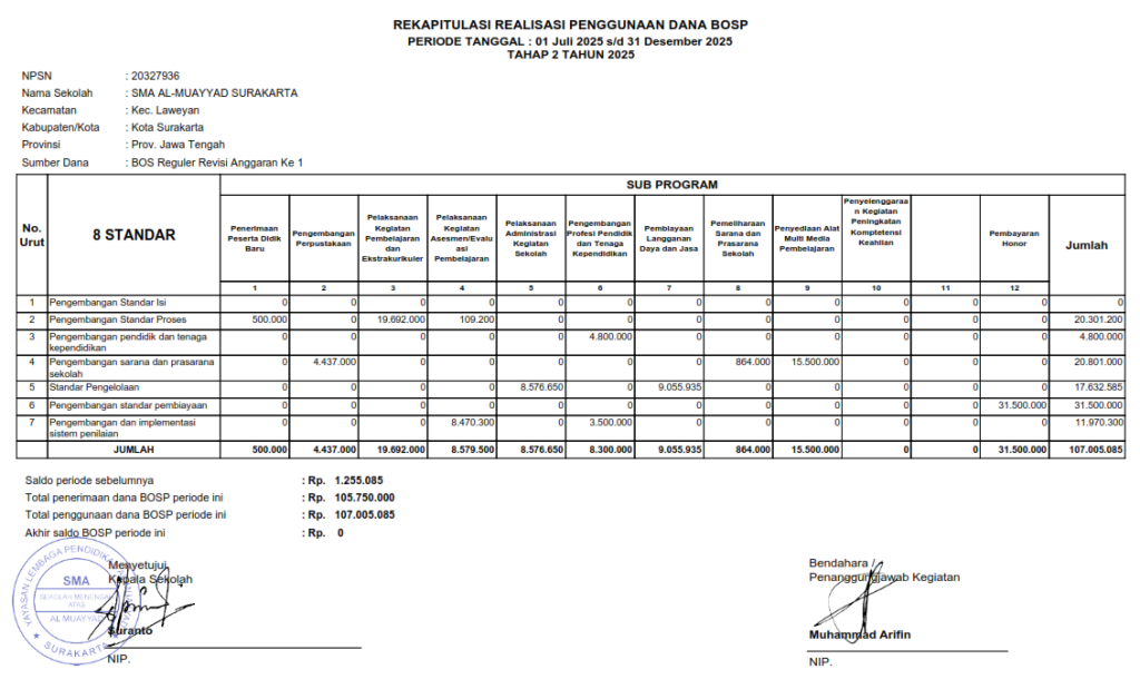 REKAPITULASI REALISASI PENGGUNAAN DANA BOSP TAHAP 2 TAHUN 2025 Berita Umum Januari 7, 2026Januari 7, 2026 adminLeave a Comment on REKAPITULASI REALISASI PENGGUNAAN DANA BOSP TAHAP 2 TAHUN 2025 Terkait